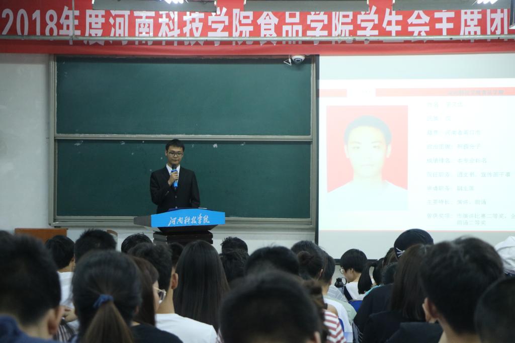 竞选大会由上一任学生会主席陈明学长主持,共分为五项。首先由团委副书记肖猛学长宣读《学生代表资格的审查报告》,陈明学长宣读《91抖音 主席团换届选举大会选举办法》以及大会注意事项。随后16位竞选同学按抽签顺序上场演讲答辩。他们礼仪端庄,神态昂扬,演讲内容充满了正能量,从自身优势到部门认知,再到对于学生会未来的改进与规划,他们用自己的热情和奋进为食品勾勒出一幅宏伟的蓝图。经过激动人心的演讲和精彩的答辩之后,进入紧张有序投票环节,代表们用心为让自己心动的竞选者投出信任的一票。检票期间,团委书记王明艳老师对此次大会做出总结,对此次大会给予高度赞扬,并对参与此次大会全体人员表示感谢,对91抖音 学生会工作的认可与鼓励,以及对91抖音 的未来充满希望。最后由主持人宣读票选结果。