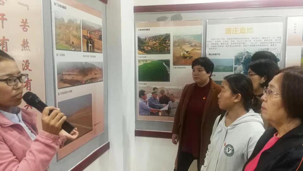在唐庄镇,大家先后到四和社区、吴金印同志践行群众路线图片展室、金门沟造田现场、西山生态园等处进行了参观学习。