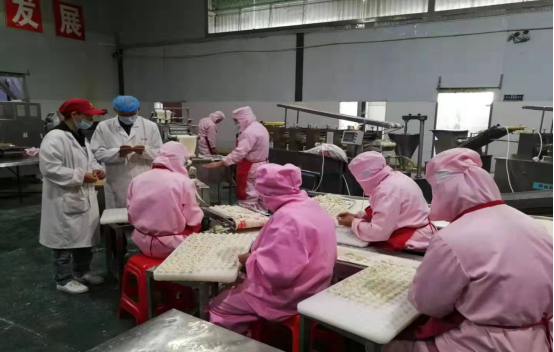 10月17日-19日,91抖音 孔瑾、高晗、刘凤勤三位老师,赴商水县河南罗大娘食品有限公司开展科技帮扶工作。三位老师深入生产车间的各工序,针对公司在生产速冻饺子、速冻菜角、速冻麻团等产品中存在的工艺技术问题进行现场指导,取得良好效果。