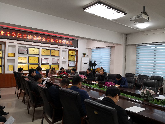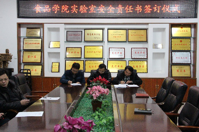 签订仪式上,李波、李光磊分别与各实验室负责人在“实验室安全责任书”上签字。随后,郭延成对实验室安全管理工作进行了安排部署。最后,李波、李光磊分别强调了实验室安全无小事,安全隐患等同于安全事故的思想,要求各实验室负责人要将安全责任落实到每一位使用实验室的老师和学生,切实提高安全防范意识,做好实验室日常安全管理和检查,及时消除安全隐患。