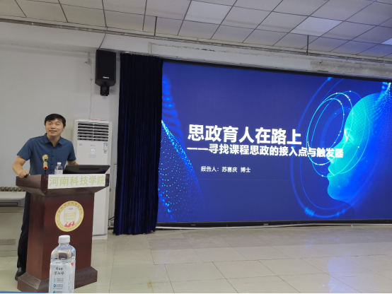 7月13日上午,文法学院苏喜庆博士应邀做了《思政育人在路上——寻找课程思政的“接入点”与“触发器”》报告。作为首批入选河南省课程思政样板课程的负责人,苏老师结合自己的授课经验,为大家分享了寻找课程思政元素的有效方法及如何将课程思政元素有机渗透到专业课程中的宝贵经验。