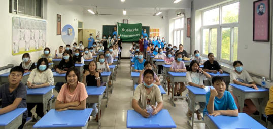 8月3日下午,多名教工党员和研究生党员走进小学,为安置点儿童开展“知食”课堂。图为周浩宇老师以《中小学生营养健康知识》为题进行授课,针对中小学生身体发育特点及营养需求,设计了适合青少年群体的膳食结构及食谱,强调了中小学生营养保健的三驾马车:饮食,运动,睡眠。