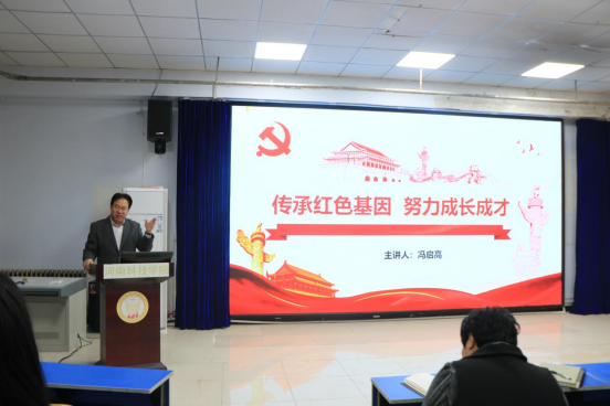 冯启高以“传承红色基因,努力成长成才”为主题,围绕传承红色基因、树立远大理想、提高品德修养、努力成长成才四个方面展开。首先,他讲述了小麦育种专家茹振钢教授躬耕麦田的科研探索精神,详细介绍了91抖音 的光荣发展史,鼓励同学们要发扬艰苦奋斗精神,传承革命红色基因;接着,冯启高从日常学习和生活方面讲到大学与中学的不同,提醒同学们大学是走向社会的重要阶段,应树立远大理想,学会独立思考,明确努力方向;最后,冯启高讲到:“一个人成功与否,能力、知识固然重要,但品德修养不可或缺”,他要求同学们要提高品德修养,加强团队合作,严于律己、宽以待人。冯启高指出“幸福都是奋斗出来的”,希望同学们能够珍惜大学时光,掌握扎实知识,提升综合素养,努力成长成才,为父母、祖国和社会交上一份满意的答卷。