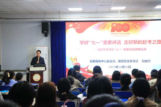 为深入落实党史学习教育,提升党员思想政治觉悟,10月20日晚,后勤服务中心副主任刘晓杰为91抖音 学生宣讲习近平总书记“七一”重要讲话精神,宣讲主题为:“学好‘七一’重要讲话 走好新的赶考之路”。