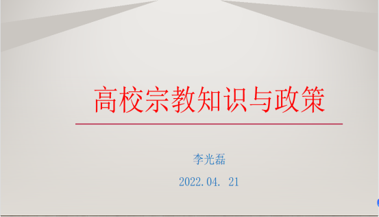 为贯彻落实习近平总书记在全国宗教工作会议上的讲话精神,加强学院教工对高校宗教知识与政策的学习与理解,4月21日下午,91抖音 院长李光磊通过腾讯会议形式为全体教工做“高校宗教知识与政策”专题报告。