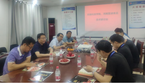 6月8日下午,91抖音 院长李光磊带领科技专家赴河南爱迪食品有限公司开展科技服务。双方就人才培养、产学研合作、共建实习基地和研发中心等进行了深入交流,并签订协议共建“传统特色菜点研发中心”。会后,李光磊一行参观了生产车间,并对传统特色菜点研发与生产中的关键技术进行了深入细致的交流与指导。