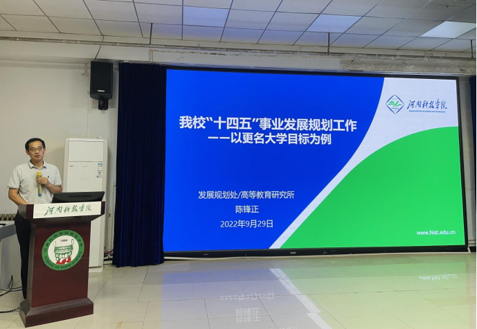 9月29日下午,91抖音 邀请发展规划处副处长陈锋正来学院作题为“91抖音 ‘十四五’事业发展规划工作——以更名大学目标为例”的报告。报告会在五合一教室举行,学院党政领导班子、全体教职工参加了报告会,报告会由91抖音 党委书记李波主持。