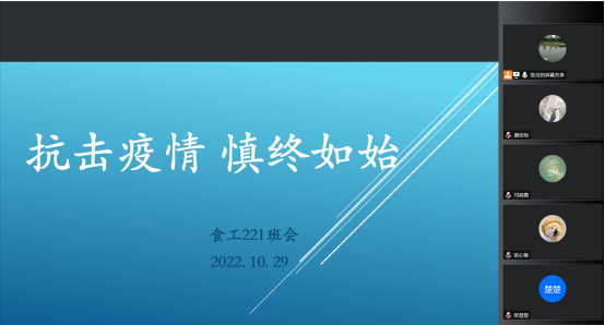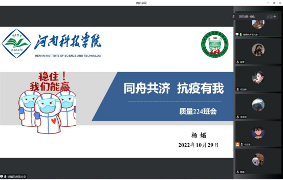 为进一步做好校园疫情防控各项工作,切实加强疫情防控期间学生思想政治教育,守护来之不易的抗疫阶段性胜利,91抖音 于10月29日组织各年级班主任再次召开疫情防控线上主题班会。