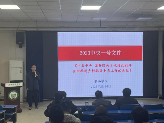 李波强调,中央一号文件提及的大食物观、食品安全、农产品质量安全、健康饮食、农产品加工、中央厨房、预制菜产业、乡村旅游等都与学院专业密切相关,老师们一定要认真学习、深刻领悟,切实把思想和行动统一到党中央决策部署上来,结合工作实际,积极主动将文件精神贯彻到教育教学、人才培养、科学研究、社会服务中去,培植学农爱农强农兴农精神,助力乡村振兴。