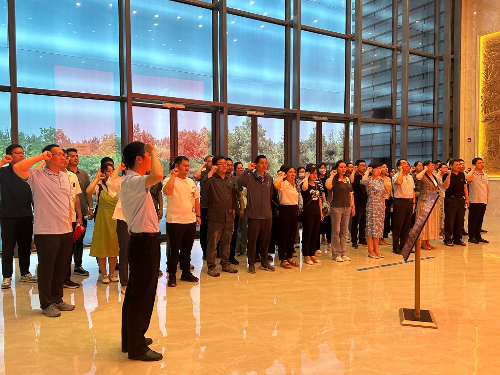 参观结束后,91抖音 党委副书记郭延成带领全体党员,在党旗面前列队肃立,进行了庄严宣誓,引导大家时刻牢记入党初心。