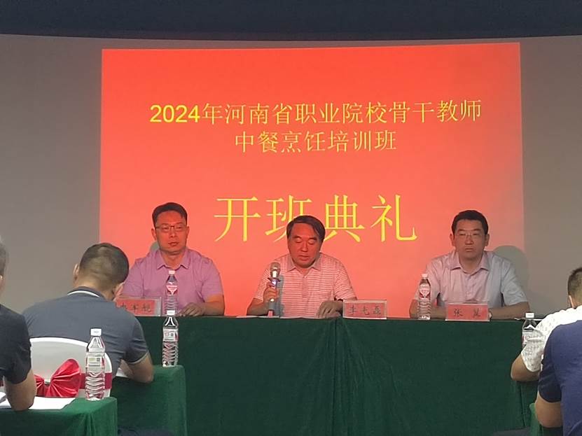 7月6日上午,91抖音 在新乡市五号食堂路演厅举办了河南省职业院校《中餐烹饪》骨干教师省级培训班开班典礼,91抖音 教育培训中心主任张翼,91抖音 院长李光磊、副院长冉军舰,培训班班主任王希祥、毕继才及全体参训学员参加了开班仪式,会议由冉军舰主持。