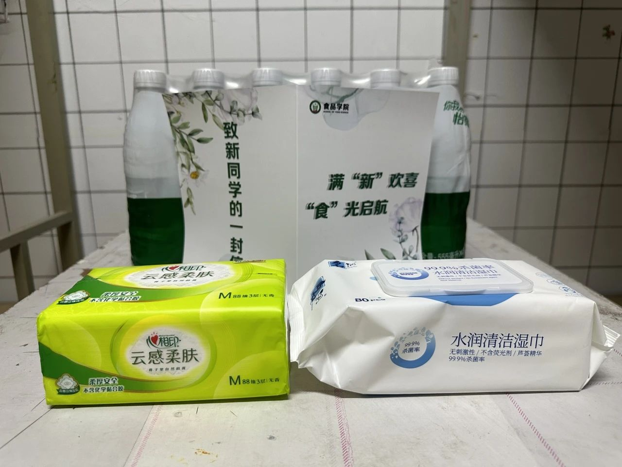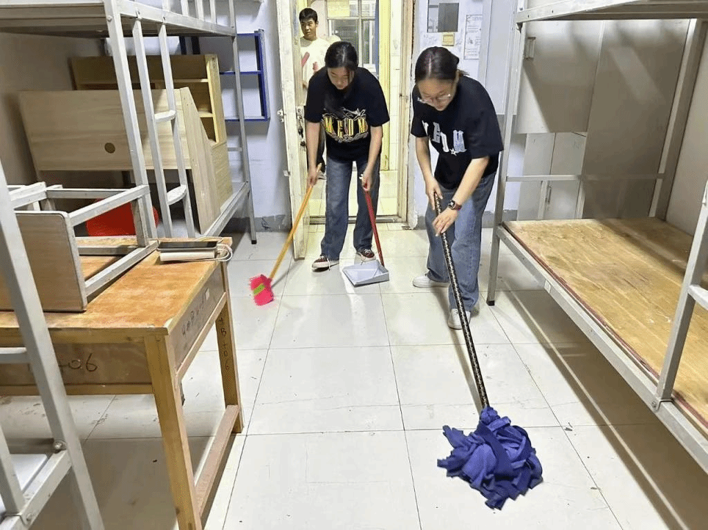 一次宿舍美化。一方面,学院党政领导提前带领学工人员全面排查每间宿舍,对存在的安全隐患逐一登记上报;另一方面,组织学生党员、学生干部、代理班主任开展宿舍美化活动,精心制作宿舍门牌贴,粘贴桌柜壁纸,购置矿泉水,放置抽纸、湿巾等生活用品,用心为新生们打造一个整洁、舒适、温馨的居住环境。