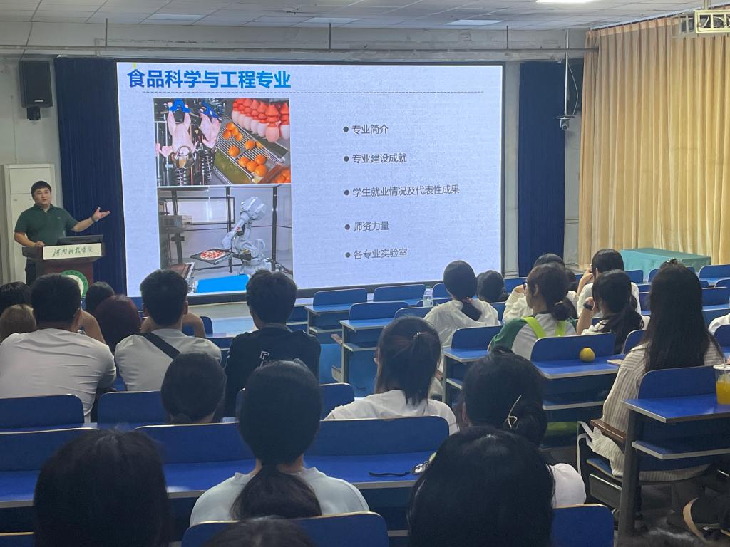 食品质量与安全专业负责人杨伟结合我国目前的食品行业现状、本专业的工作前景以及学科优势等方面,详细介绍了食品质量与安全专业。他以培养目标为切入点,鼓励同学们要认真学习专业知识,结合自身兴趣、特点、学业和职业发展规划,在思考与判断中不断成长。