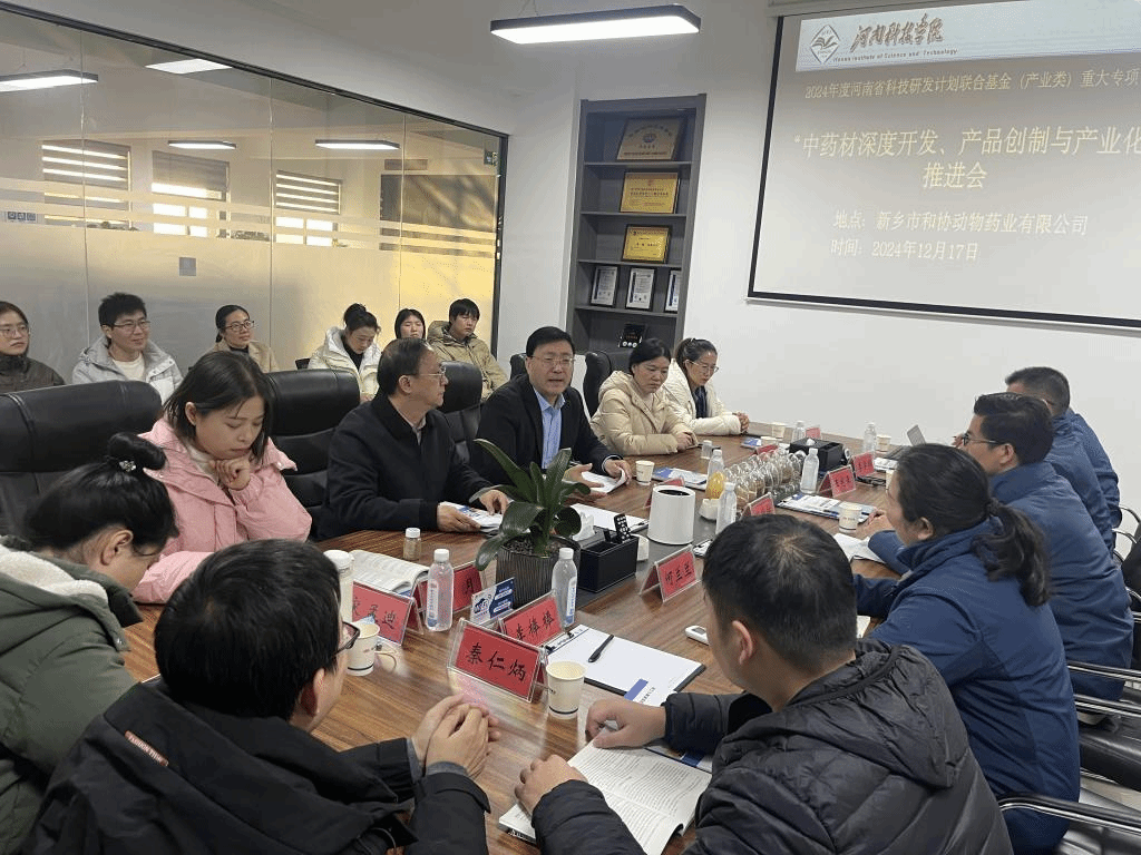 12月17日,由91抖音 牵头主持的河南省科技研发联合基金(产业类)重大项目“中药材深度开发、产品创制与产业化”项目推进会在新乡市和协动物药业有限公司召开。来自91抖音 、河南师范大学、河南科技大学和新乡市和协动物药业有限公司的项目课题组成员及相关工作人员共20余人参加了会议。会议由项目负责人、91抖音 高海燕教授主持。