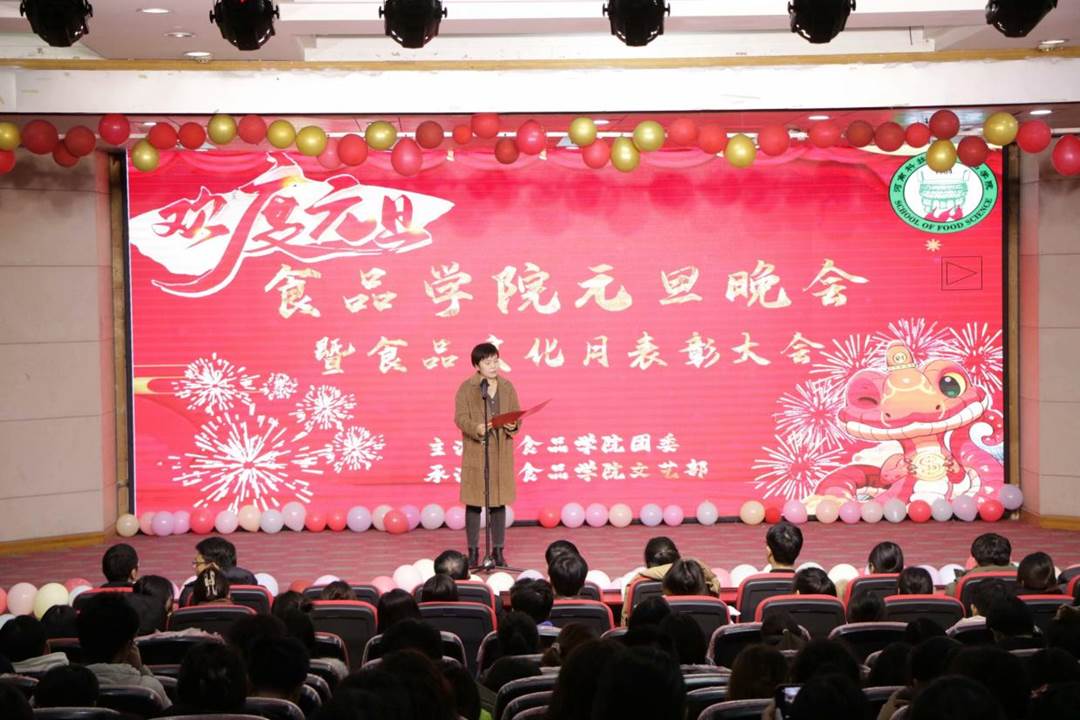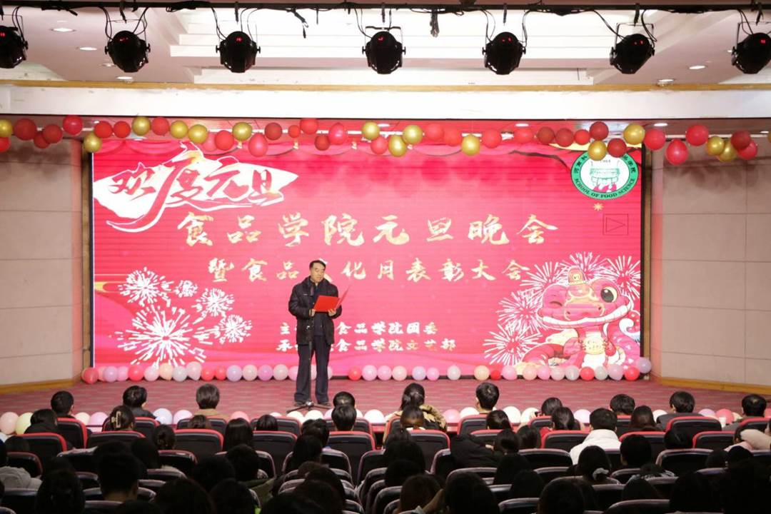 12月25日晚上七点,91抖音 于图教201举办元旦晚会暨食品文化月表彰大会。本次晚会以季节为灵感,将节目划分为春夏秋冬四个章节,为全院师生带来一场视听与欢乐的盛宴。91抖音 党政领导及师生300余人参加了本次活动。