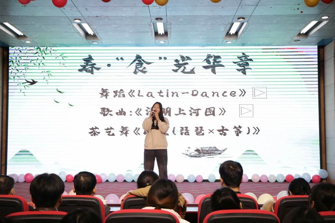 晚会节目分为“春·食光华章”、“夏·青春悦动”、秋·华彩当下”、“冬·梦想篇章”四个篇章,节目形式多样,精彩纷呈。悠扬的歌声、动人的舞蹈、幽默的小品、精彩的相声表演等节目轮番上演,为观众们带来了一场视听盛宴。晚会在充满活力与希望的“春·食光华章”拉开帷幕。舞者们身着鲜绿的服装,如同春天破土而出的新芽,用灵动的舞姿展现了春季的生机。歌曲演唱精彩纷呈,歌手的歌声极具感染力,婉转悠扬,扣人心弦。随着舞台灯光的转换,“夏·青春悦动”以如火的热情席卷而来。充满激情的现代舞表演,舞者们用高难度的动作和强烈的节奏表达夏日的热情。富有诗意的配乐朗诵,朗诵者深情地讲述着青春的活力。“秋·华彩当下”犹如一幅丰收的画卷在舞台上徐徐展开。小品表演过程中,表演者们以风趣幽默的语言和生动的肢体动作,将日常学习中的趣闻轶事搬上舞台,台下师生不时爆发出阵阵笑声和掌声。晚会逐渐进入“冬·梦想篇章”环节,相声演员们诙谐幽默的表演让全场观众欢笑连连,紧接着的音乐表演又带来了温暖的感动。晚会氛围轻松快乐,不仅展现出学院浓厚的文化氛围,更让大家在欢笑中增进了对学院的热爱与归属感。