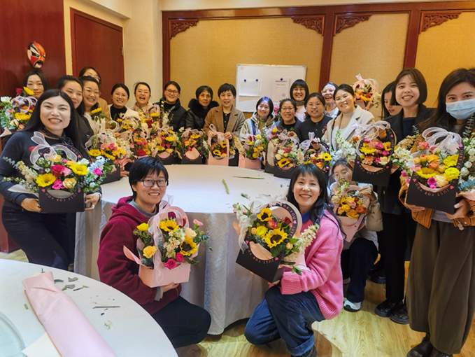 学院邀请了校医院院长、河南省健康科普专家李艳丽,在三楼会议室为女教工举办了以“风吟花开 健康有爱”为主题的女性健康专题讲座。李医生围绕女性健康,探讨如何平衡女性的家庭责任和职业发展,倡导科学饮食,建议培养个人良好,注重身心健康并适度运动。现场反响热烈,李医生为众人进行了答疑解惑,进一步巩固了讲座效果。会后,大家齐聚四楼旅游管理实验室,开展“岁月含香,如花绽放”的插花体验活动。活动现场满室的鲜花,芳香四溢。女教工利用自己灵巧的双手,制作出一幅幅动人的插花作品。满屋的美景让人忍不住拍照留念。