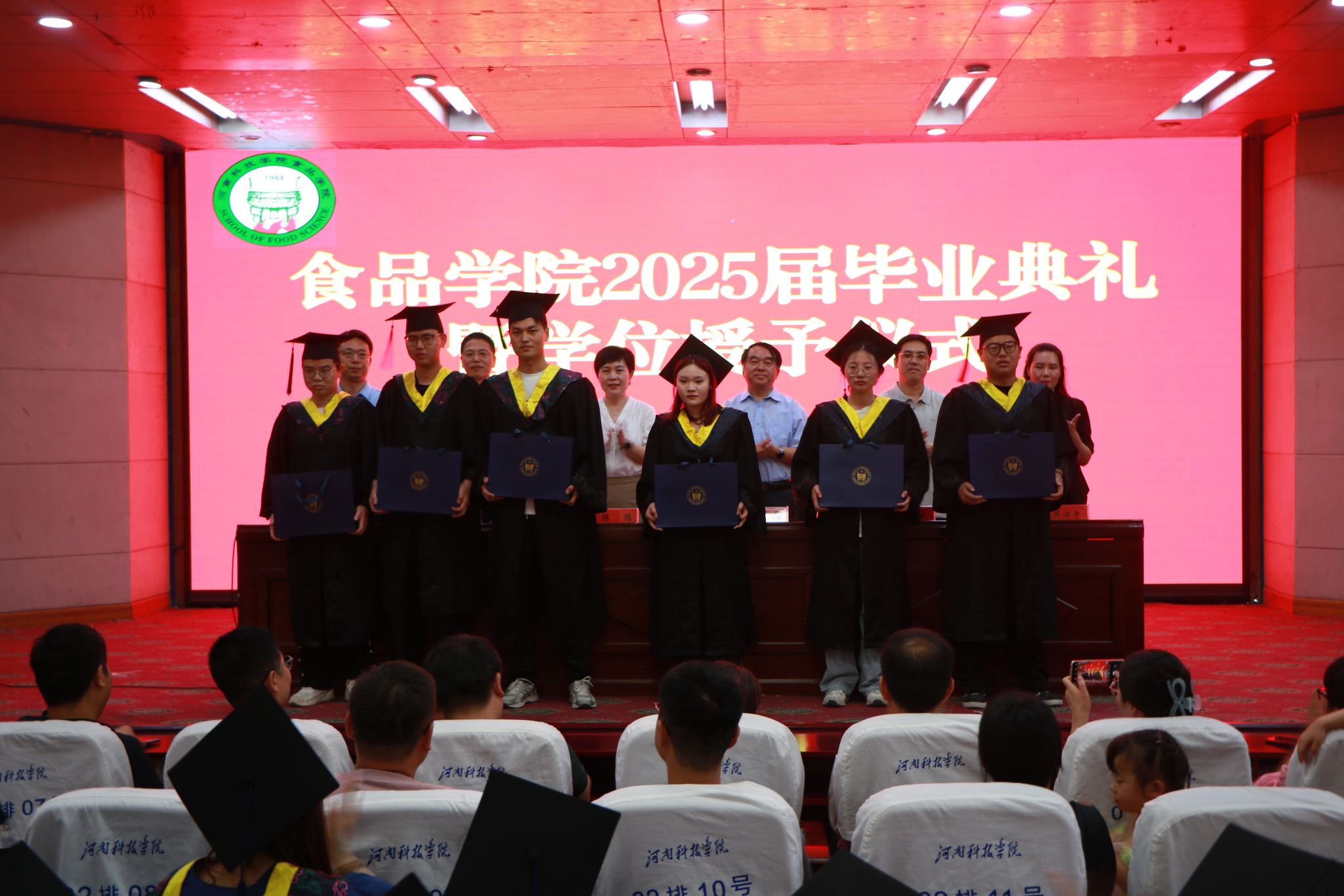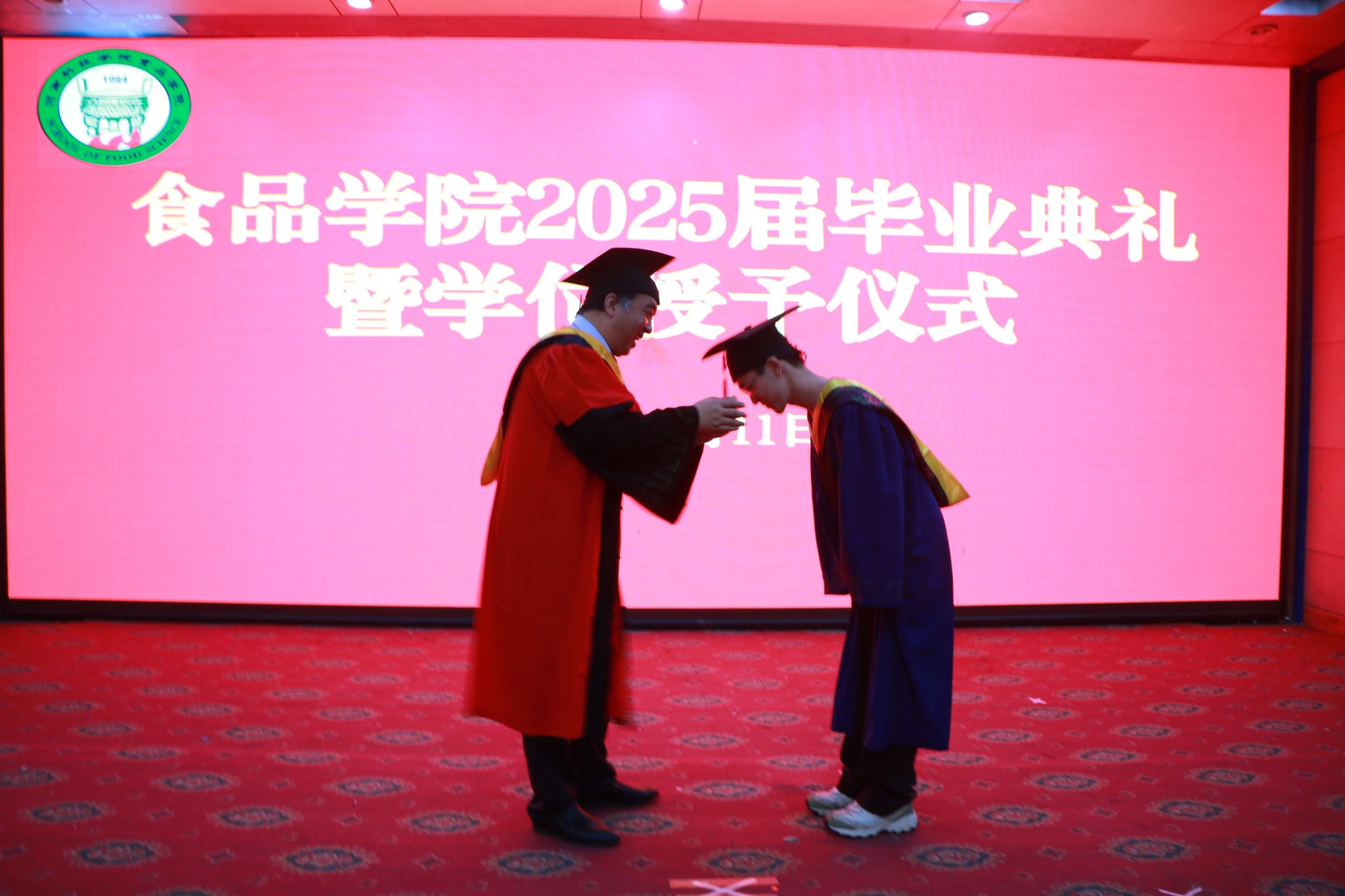 学院党委书记陈腾在讲话中向毕业生提出三点希望:一是要以食品人的担当直面挑战。既要以“顶天”的志向拥抱时代,又要以“立地”的情怀扎根大地。二要以科院人的情怀服务社会。传承好“百农精神”,既要把论文写在祖国大地上,也要把初心刻在职业信仰里。三要以追梦者的姿态勇担使命。通过“适应”、“超越”、“引领”三个关键词,引导毕业生用实际行动描画未来,在平凡中造就辉煌。