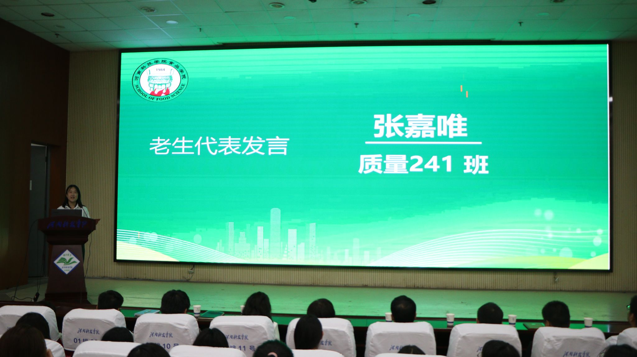 王珂博士作为教师代表对新生提出了殷切的期望与建议,希望他们扎根食品,勇于探索。2024级老生代表张嘉唯讲述了自己对大学生活的体会与心得,希望他们勇做理想路上的坚守者、创新者、践行者。2025级新生代表付嘉晨号召同学们努力学习专业文化知识,增强自我修养,争做志存高远、博学善思的新时代大学生。