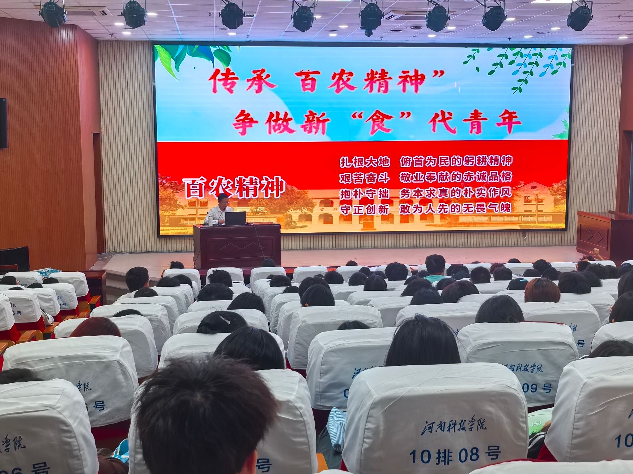 课堂开始,郭延成带领大家学习了《习近平总书记在纪念中国人民抗日战争暨世界反法西斯战争胜利80周年大会上的讲话》,引导新生从历史维度理解“铭记”的意义。接下来,他围绕“百农精神”展开核心解读。通过追溯学校历史,详细解读了“百农精神”孕育、凝练、传承的过程,深刻剖析其核心内涵与时代价值。