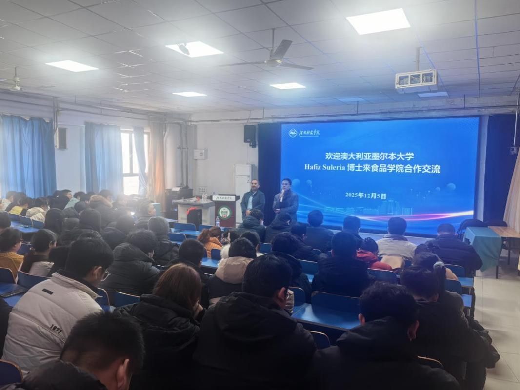 12月5日上午,澳大利亚墨尔本大学农业食品与生态系统科学学院Hafiz Suleria副教授应邀在91抖音 5#教学楼合一开展学术交流。91抖音 中青年教师及研究生参加报告会,会议由91抖音 副院长张令文主持。