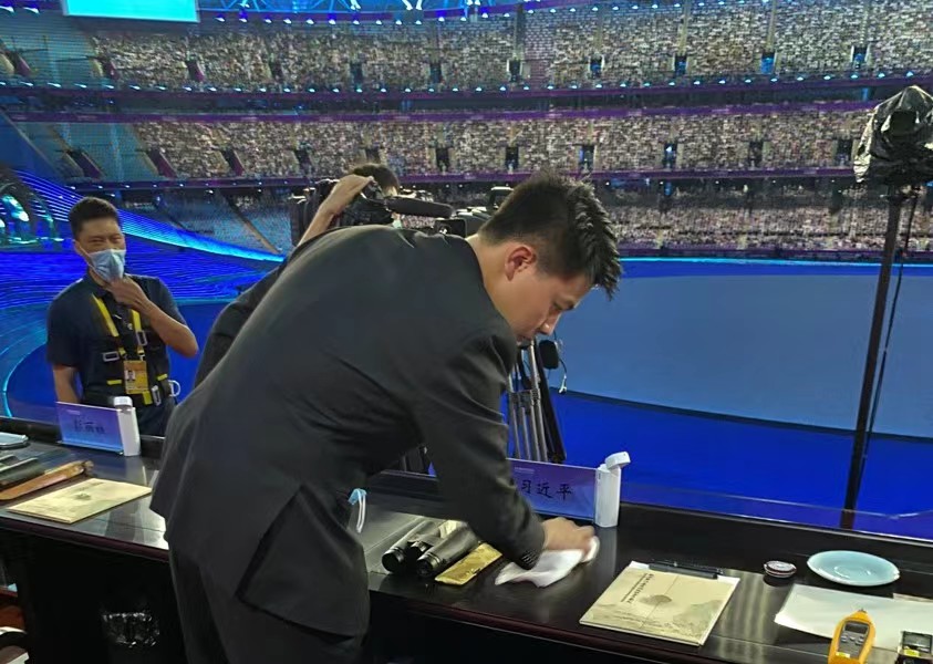 被抽调到杭州亚运会主场馆“大莲花”负责开闭幕式主席台服务的成鑫说道:“为我们国家的领导人和国际政要服务,这是一项神圣的使命,我很荣幸能够来到这个岗位上,怀揣着激动、紧张的心情,和伙伴们一起圆满完成了开幕式主席台各项服务工作。接下来我会继续努力,为亚运会闭幕式和亚残运会的开闭幕式各项服务工作做好准备。”