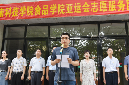 带队教师聂远洋对志愿服务团提出要求,他指出此次服务亚运会既是生产实习,也是社会实践,希望同学们在实践中锻炼技能、磨炼品质、展现形象,以高质量的服务水平为这场体育盛事助力。