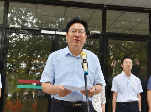 出征仪式上,91抖音 院长李光磊为志愿服务团进行了授旗。