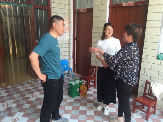 到达闫庄村后,在驻村第一书记李军民的陪同下,吴丹到帮扶对象杨忠波家中进行了走访,送去了牛奶、油等慰问品。一行人与杨忠波的爱人拉家常、聊近况,详细了解家庭的生活情况以及需要帮助解决的实际困难,在获悉杨忠波爱人还经常为因病去世的儿子伤心落泪时,吴丹耐心细致地对其进行了心理疏导,鼓励她调整心态,面对现实,尽快走出阴影,积极乐观地面对生活。
