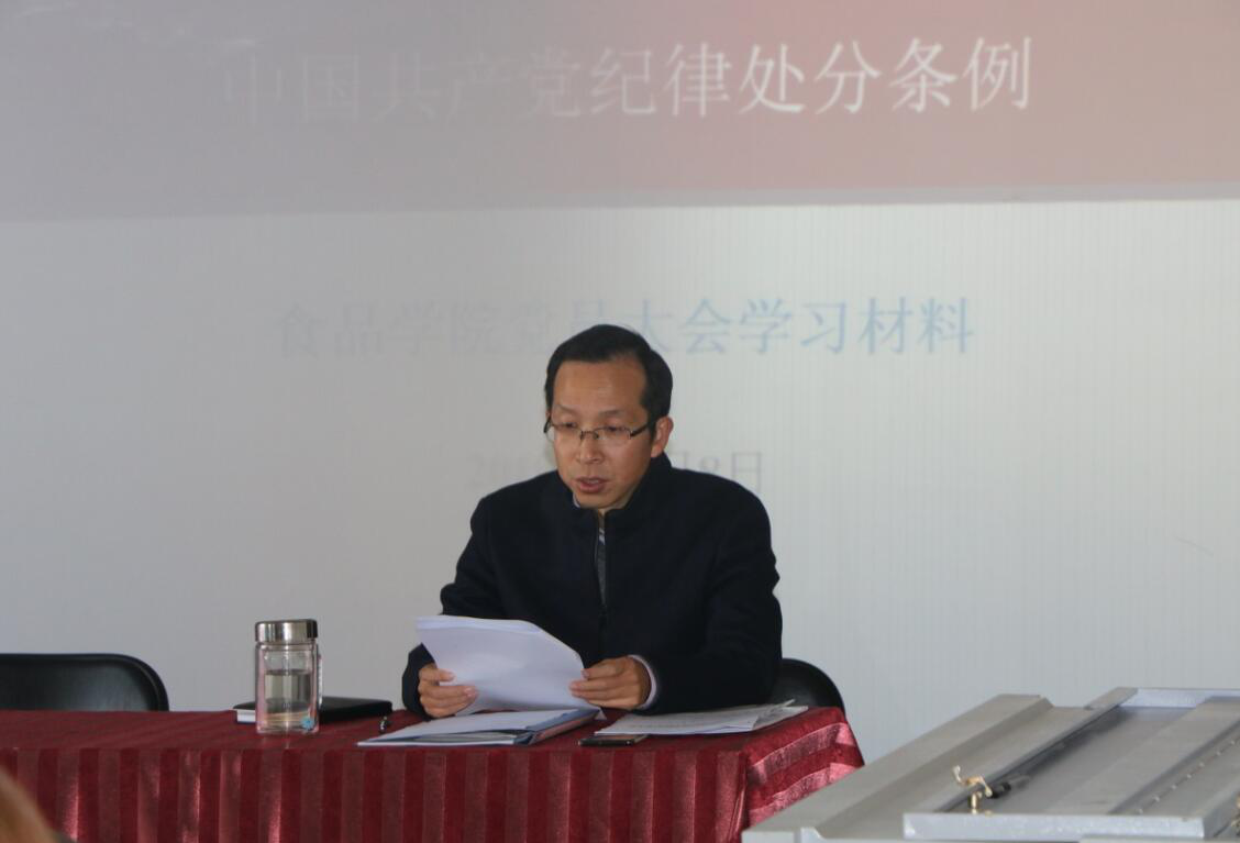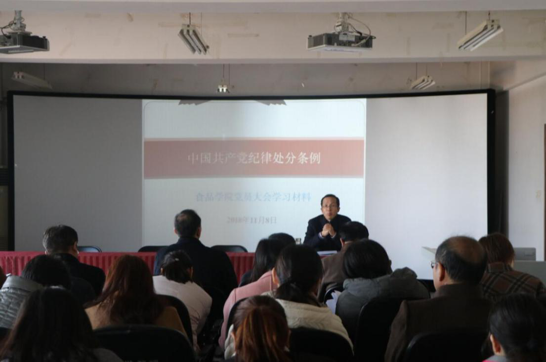党委书记李波在四楼会议室为全体教工党员讲授了新修订的《中国共产党纪律处分条例》和《以案促改典型案例剖析》。李波讲解了《条例》为什么改、改了什么,领学了条例主要内容,尤其是学院教工党员层面有可能触犯的违纪条款。结合以案促改典型案例,李波强调有些违纪问题其实离普通党员也很近,只有认真学习,提高思想认识,才能做到不触碰、不犯错。