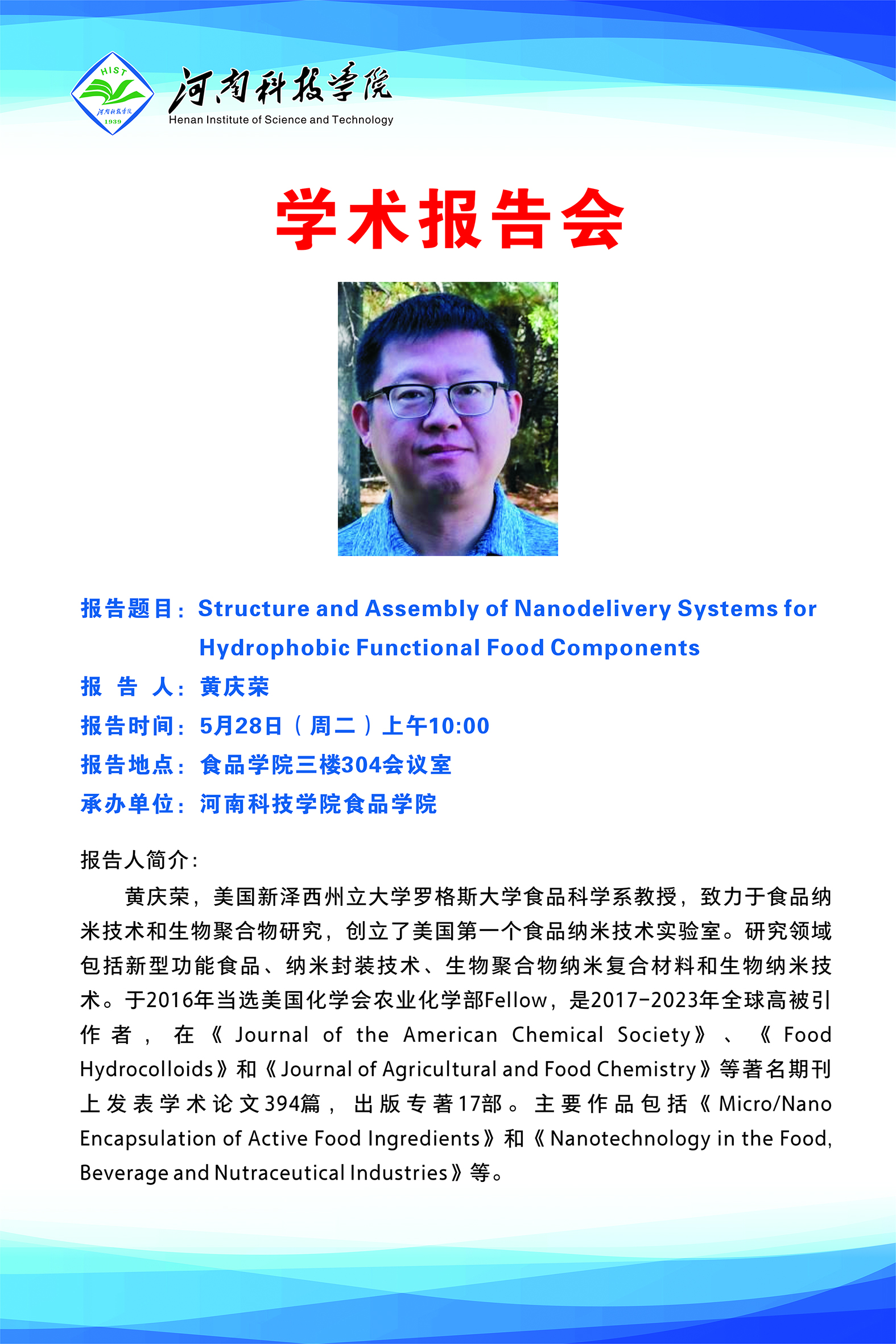 江苏大学副校长邹小波教授应邀到91抖音 作学术报告