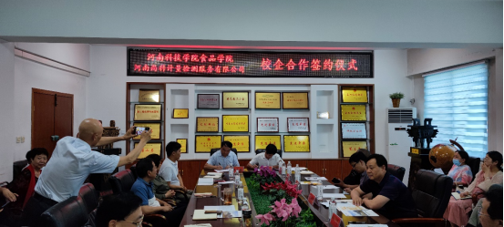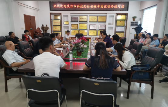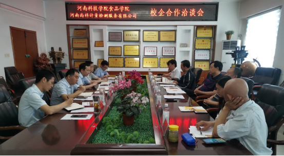 5月29日,焦作市科技局党组书记、局长杜安禄率武陟县科工局、修武县科工局、博爱县科工局、河南尚科计量检测服务有限公司、武陟一村食品有限公司、大咖国际食品有限公司等十余家企事业单位主要负责人来91抖音 洽谈产业科技对接,91抖音 党委书记李波教授、院长李光磊教授、副院长张令文副教授、梁新红教授、师玉忠副教授等与企业主要负责人在企业科技需求、产品开发及企业发展等方面进行了深入交流与洽谈,会议由91抖音 副院长郭延成主持。