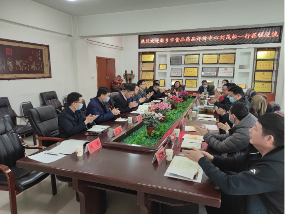 3月7日下午,新乡市食品药品评价中心副主任刘茂松、副高级工程师潘艳一行来91抖音 座谈交流。91抖音 院长李光磊、副院长郭延成、科研秘书冉军舰以及相关教师代表参加了会议。